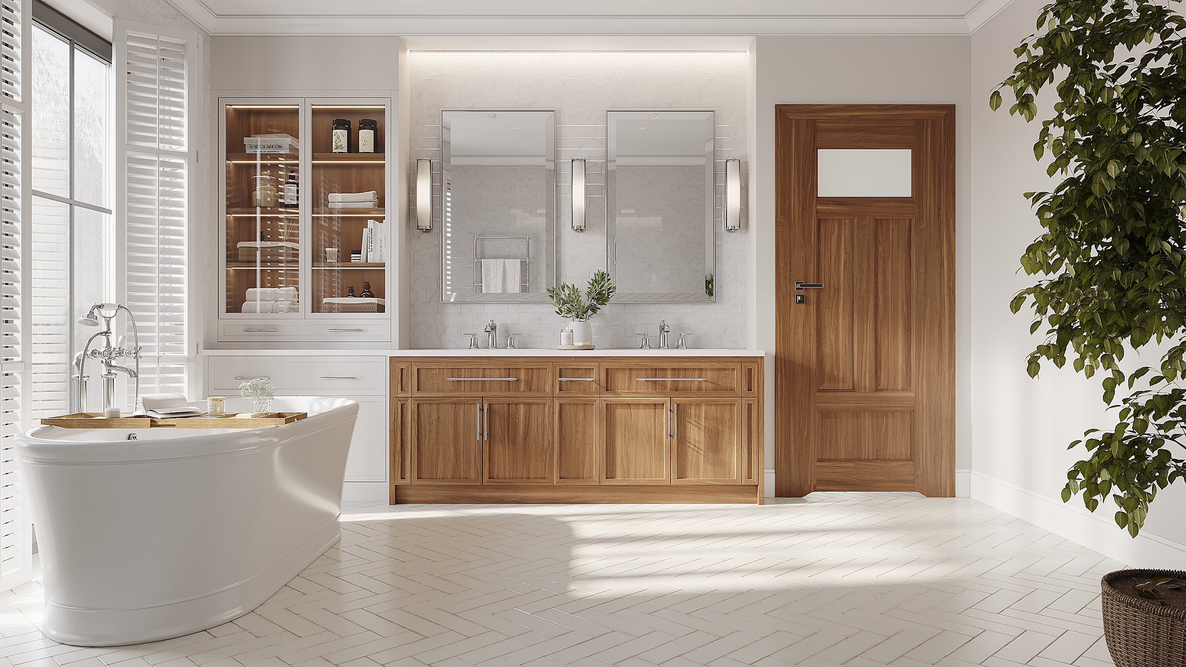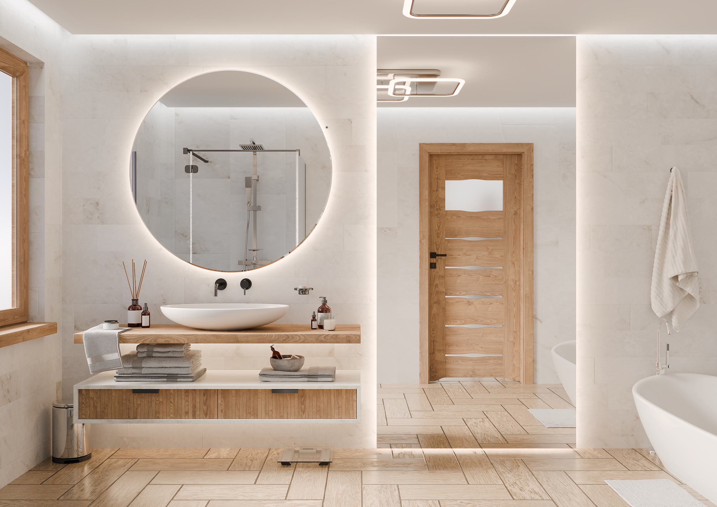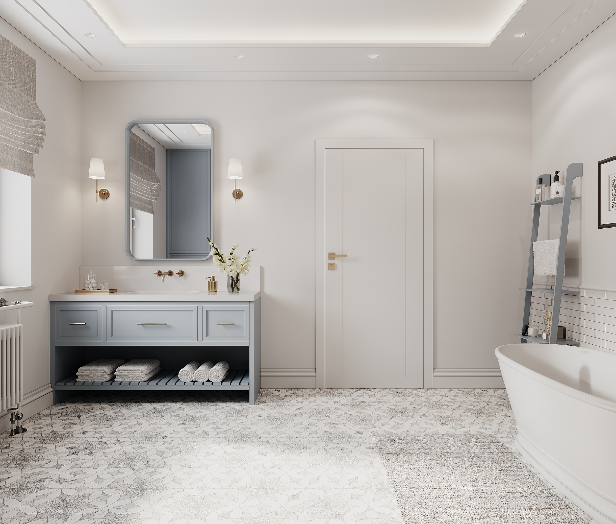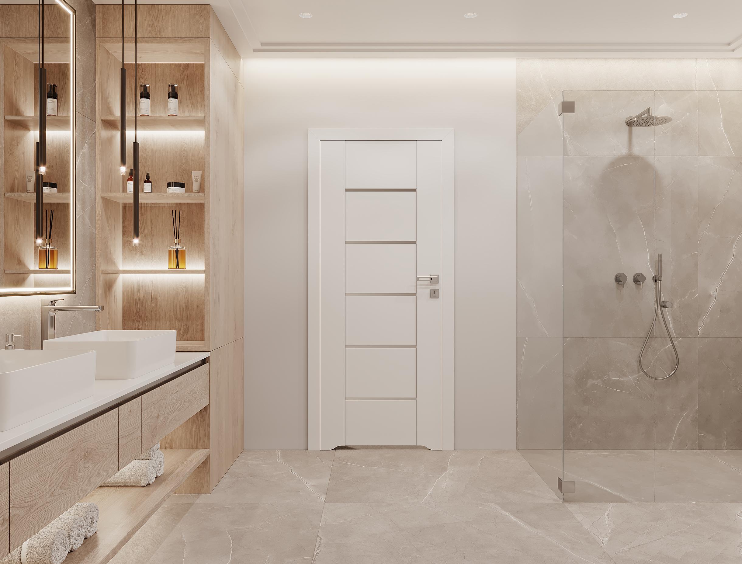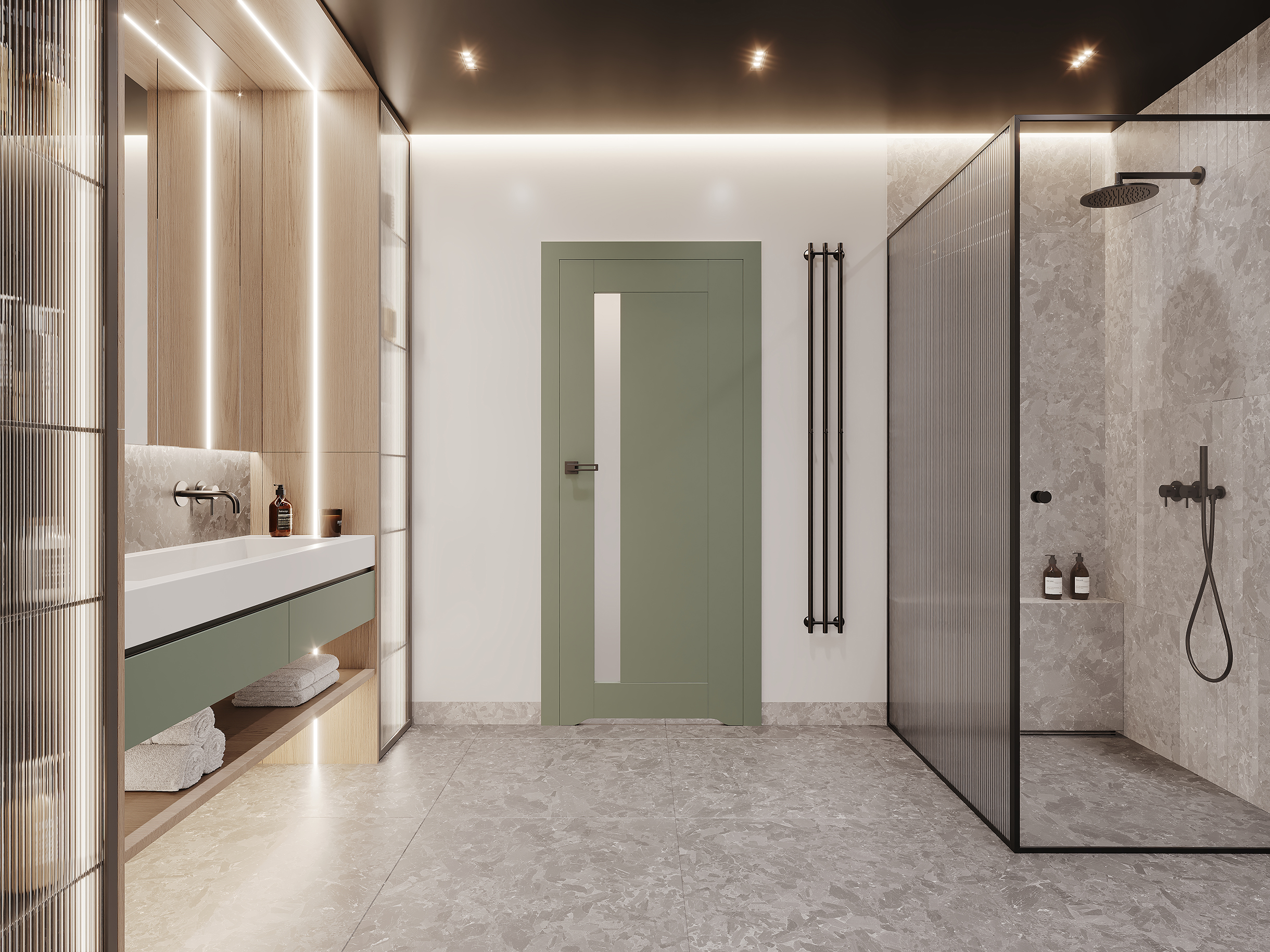 ościeżnica DRE WaterProof wizualnie nie różni się od modeli MDF. Jest pokryta tymi samymi dekorami. Dzięki temu można dopasować do siebie ościeżnice o różnych właściwościach i zastosować je w tej samej przestrzeni, zachowując estetyczny wygląd.
